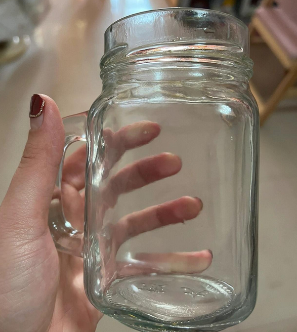 使用納米海綿清潔標簽膠前的杯子